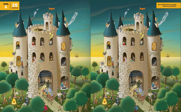 El nivel de dificultad aumenta en cada página. Empieza buscando 1, 4, 7..., ¡y hasta 40 diferencias en una sola página!