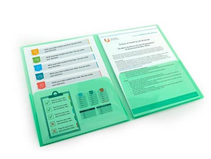 Dossier con 2 bolsillos interiores para documentos.