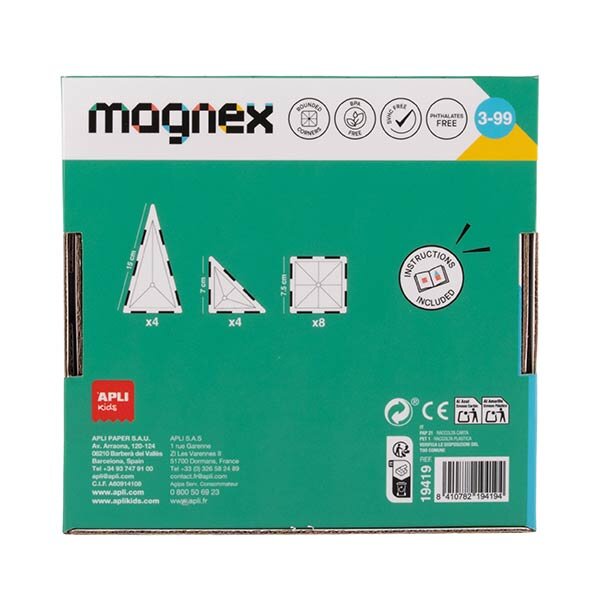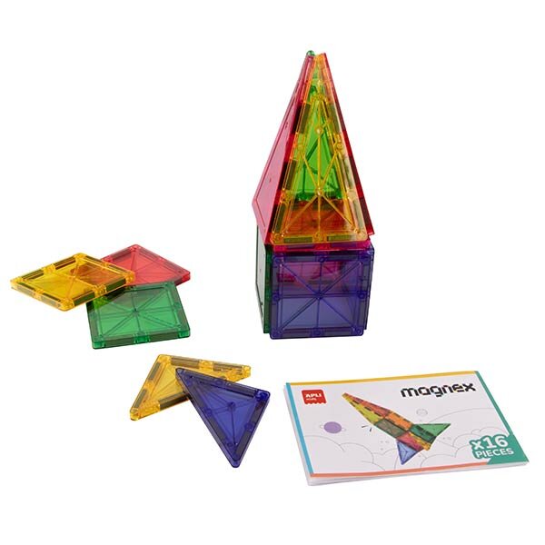 El set Magnex de 16 piezas es ideal para que los más pequeños se inicien en el juego de construcción de imanes. Incluye piezas magnéticas de colores y formas geométricas que se conectan fácilmente, permitiendo explorar conceptos como forma, equilibrio y espacio desde una edad temprana. El juego contiene 16 piezas magnéticas y unas instrucciones con ejemplos a seguir. Los niños podrán construir diferentes piezas 3D poniendo las piezas imantadas una encima de la otra. Diseñado para niños y niñas a partir de 3 años, este juego estimula la creatividad, la motricidad fina, el pensamiento lógico y la coordinación mano-ojo, todo ello a través del juego libre y manipulativo. Su tamaño compacto lo hace perfecto para llevarlo a todas partes o incorporarlo a las actividades del aula.
