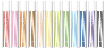 Se vende en cajas surtidas de 24 tubos de minas. El surtido contiene dos tubos de cada color: -azul -rojo -naranja -turquesa -negro -amarillo -marrón -verde oscuro -verde -lila -azul -rosa