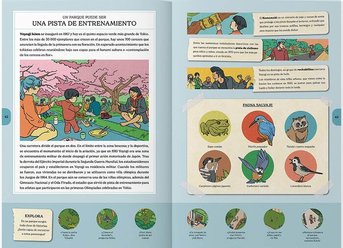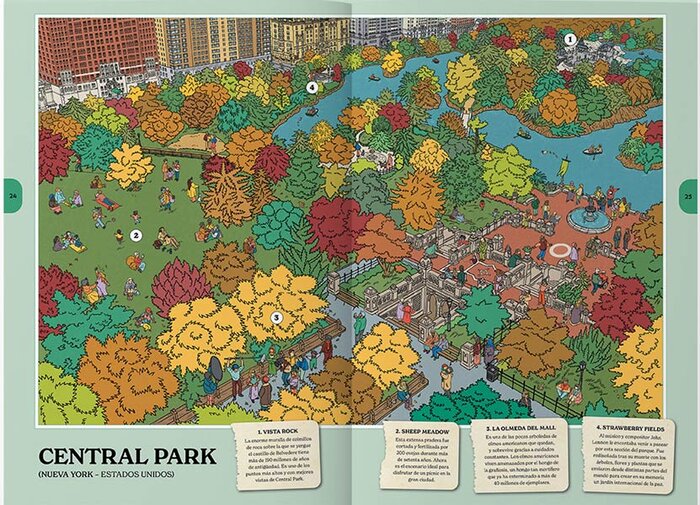 ¿En qué parque crecen los árboles de Moctezuma? ¿A qué parque iba John Lennon a pasear? ¿Y a cuál van los rockabillies japoneses a bailar? Descubre los secretos mejor guardados de los parques urbanos más emblemáticos, en un recorrido alrededor del mundo que incluye catorce mapas ilustrados llenos de curiosidades, divertidos personajes y naturaleza en su máximo esplendor.