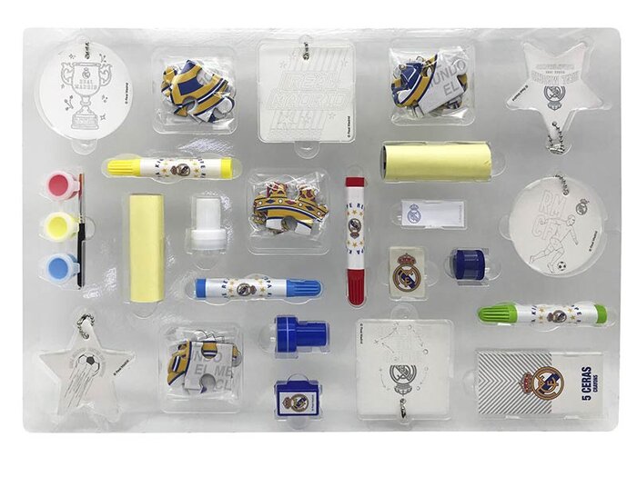 REAL MADRID: Con este calendario de adviento podrás celebrar la llegada de la Navidad con un regalo distinto cada día. CARACTERÍSTICAS: Este calendario de adviento cuenta con un montón de sorpresas en su interior: pegatinas, sellos, brazalete, puzzle o pinturas, entre otros detalles pensados para amenizar la espera de las Navidad a todos los madridistas. PRODUCTO DE CALIDAD: Diseñado en España siguiendo todos los procesos de fabricación y calidad de acuerdo con la normativa europea. Utilizamos materiales resistentes y de gran calidad en todos nuestros productos poniendo gran esfuerzo en crear diseños especiales para ti. MARCA: Este producto licenciado es oficial y 100% original.