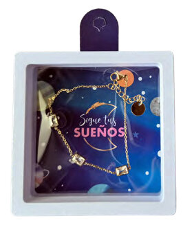 Expositor de 27 pulseras surtidas de acero inoxidable en dorado y plateado. Ideales para llevarlas todos los días ya que son Waterproof. Puedes bañarte con ellas. . Vienen presentadas con un joyero hermético para que siempre la joya esté en perfecto estado, ideal para regalo.