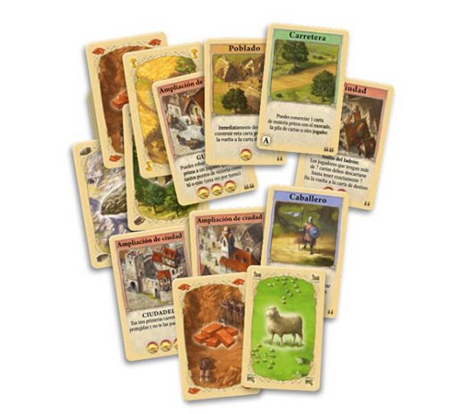 El aclamado clásico de Klaus Teuber vuelve en un nuevo formato. Catan cartas es la versión portátil del prestigioso título de estrategia, gestión de recursos y comercio que nos reta a desarrollar y expandir un asentamiento en la isla de Catan. En esta edición, pensada para entre 2 y 4 personas a partir de 8 años, los jugadores también compiten por alcanzar los 10 puntos de victoria, pero lo harán sin tirar dados. Las reglas son muy intuitivas, ¡enseguida os pondréis a jugar! Para preparar la partida, lo primero que hay que hacer es retirar las cartas correspondientes si sois menos de 4 jugadores. Barajad las cartas de materia prima (roca, madera, cereales, lana y arcilla) y formad un mazo. Dejad al lado las cartas de construcción ordenadas por tipo (carretera, poblado, caballero y ampliación) y la carta de destino mostrando las flechas blancas (solo en partidas para 3 o 4 jugadores). A continuación, desplegad un mercado central con 5 cartas de materia prima a la vista de todos y repartid una mano de 3 cartas para cada contendiente, que permanecerán ocultas al resto. Finalmente, todos los jugadores toman una carta de carretera, otra de poblado y el resumen de costes, que sitúan en su zona de juego. En su turno, cada jugador podrá llevar a cabo tres acciones en orden: comerciar, construir y robar recursos. En la fase de comercio, se pueden intercambian recursos de la mano con la pila de cartas, el mercado o el resto de jugadores, según el número de carreteras con la cara A visible que tengan. En la fase de construcción, se usan los recursos para hacer crecer el asentamiento con carreteras, poblados, ciudades y ampliaciones de ciudades o contratar caballeros; en caso de querer construir una carretera o un caballero y la pila central está agotada, tomará la carta del jugador que se encuentre más cerca en la dirección indicada por la flecha de destino. Tal como pasa en el juego de tablero, ¡hay que tener cuidado con los ladrones! En la última fase, los jugadores roban las dos cartas superiores de la pila de materia prima; por cada carta de caballero que tengan mostrando el lado A, podrán robar una carta más. Algunas cartas de ampliación de ciudad otorgan beneficios adicionales, solo hace falta leer el texto impreso y aplicarlo. Como los puntos de victoria son visibles en todo momento en la parte inferior de las cartas, sabréis qué jugadores llevan la delantera. Catan cartas mantiene la esencia del juego de tablero original, con el añadido que gracias a su formato permite vivir la experiencia en cualquier lugar. Ideal para viajes y partidas improvisadas, será vuestro fiel aliado en encuentros casuales con amigos y familia. Con una segunda copia del juego podéis ampliar la experiencia a 5 o 6 jugadores sin cambiar las reglas. Simplemente, añadid las cartas de materia prima y ajustad las cartas de construcción al número que seáis. ¡Toda la diversión del clásico de tablero en una edición de bolsillo!