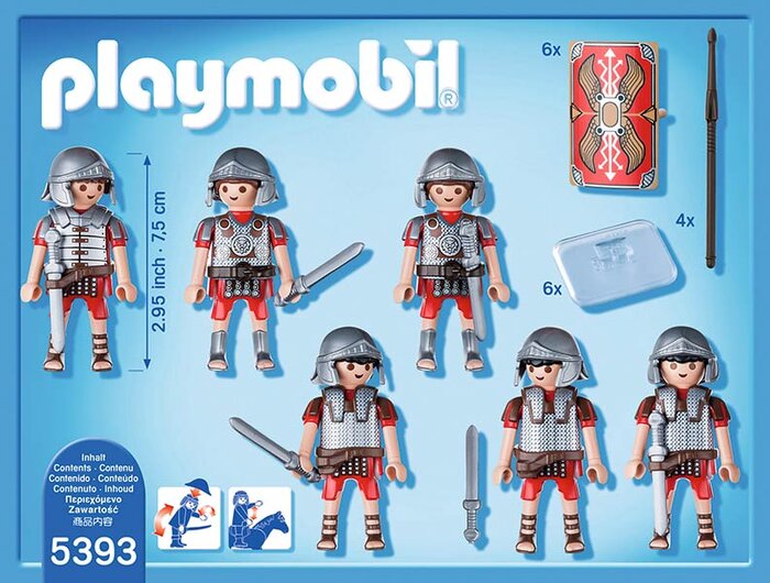 Conjunto de seis legionarios con espadas, escudos y lanzas. El set incluye seis soportes para encajar las figuras y se mantengan en pie.