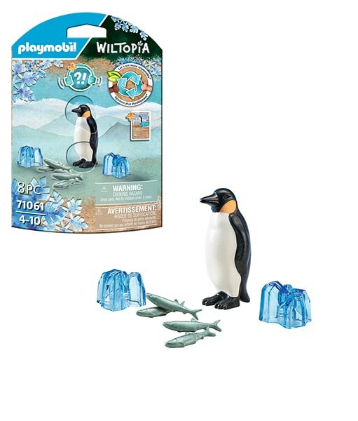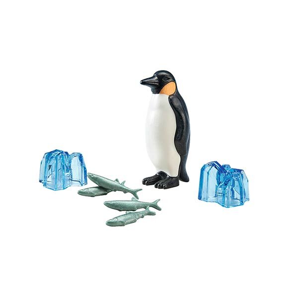 El hogar de los pingüinos emperadores es la Antártida, en el extremo sur del planeta: un paisaje de hielo y nieve. Los pingüinos se protegen del frío extremo con una capa de grasa y plumas impermeables de dos a tres centímetros de grosor. Los pingüinos emperadores son animales muy sociales que viven juntos en grandes grupos llamados colonias. Por la noche, las aves permanecen juntas, cambiando regularmente de lugar para que todos puedan calentarse en el centro del grupo. Wiltopia invita a los niños y niñas a descubrir las regiones de nuestro mundo que merecen ser protegidas y a sus numerosos. Además, combina el juego y el aprendizaje de una manera única. El set PLAYMOBIL incluye un pingüino emperador, cuatro peces, dos cristales de hielo y una tarjeta de conocimiento.